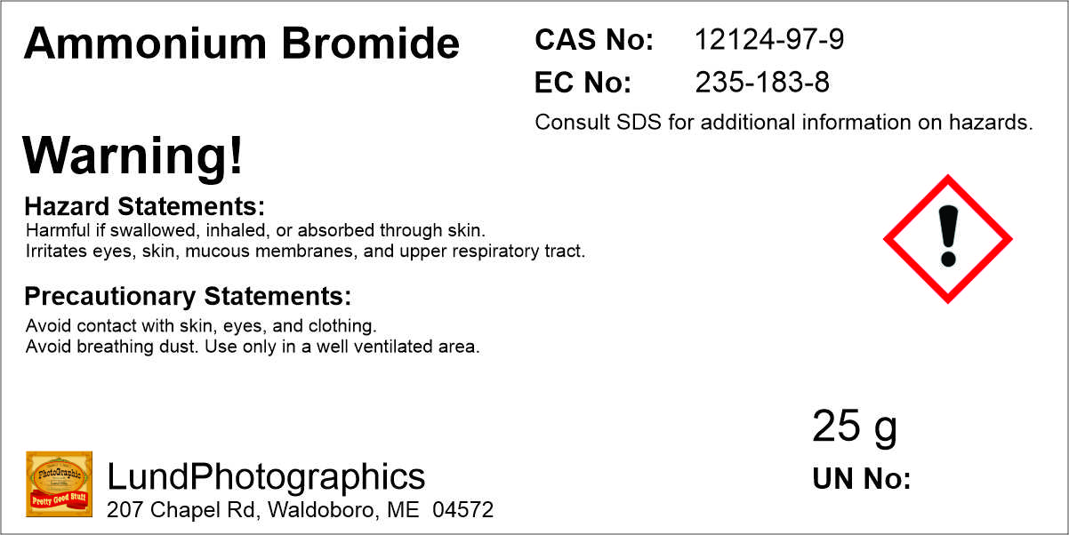 Ammonium Bromide is one of the metal salts used to salt collodion for use in wet plate photography.